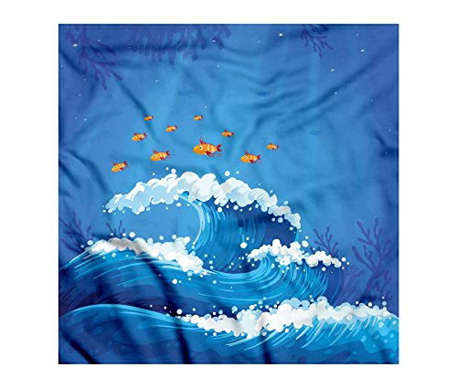 (Ambesonne)/Accessories/Scarves/DIRECT FROM USA/Marine Bandana by Ambesonne, Underwater with Group of Fish and Wave in the Ocean Coral Reef Ill...