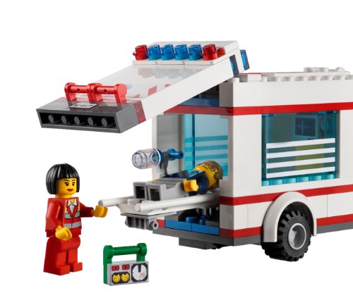 -. Feature : 3 Minifiguren: 2 Ärzte und einen Patienten / Besteht aus Rettungswagen und Verkehrsampel / Rettungswagen mit detailgetreuer Innenausstattung, herausnehmbarer Trage und Hecktür zum Öffnen / Ebenfalls enthalten: Fahrrad, Helm, Mülltonne und Arzttasche / Der Rettungswagen ist 17 cm lang. / Nimm das Dach ab, um den Patienten besser versorgen zu können!