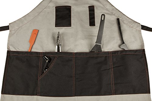 POCKETS FOR EVERYTHING – 4 large pockets at the bottom to store your BBQ and Grilling tools as well as drinks and bottles and 2 pockets at the top for your meat thermometer and phone