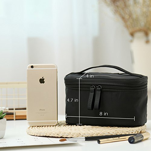 - 【Humanity Design】Meditate size (8.6LX4.7WX4.6Hinch) but capacity, lightweight and compressible. This Cosmetics Case also designs smooth dual zipper and highly stitched top handle strap, more convenient and safe to carry.