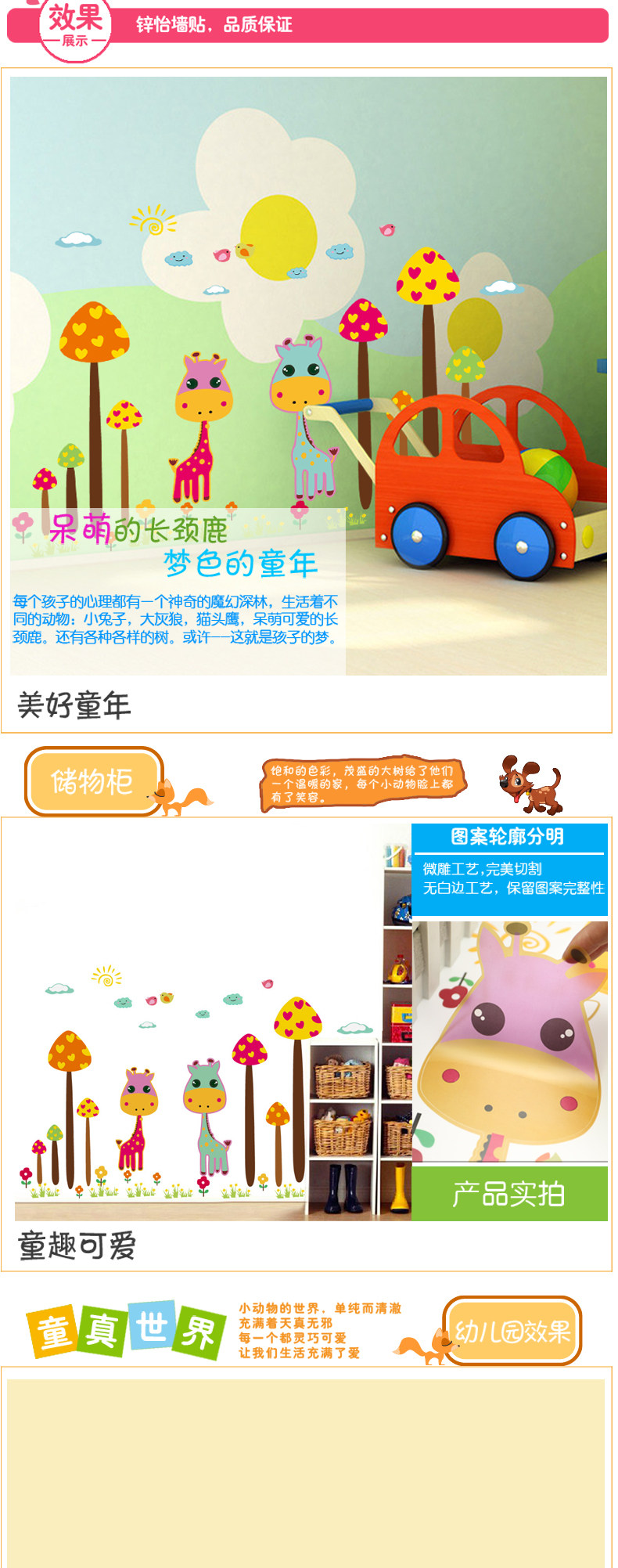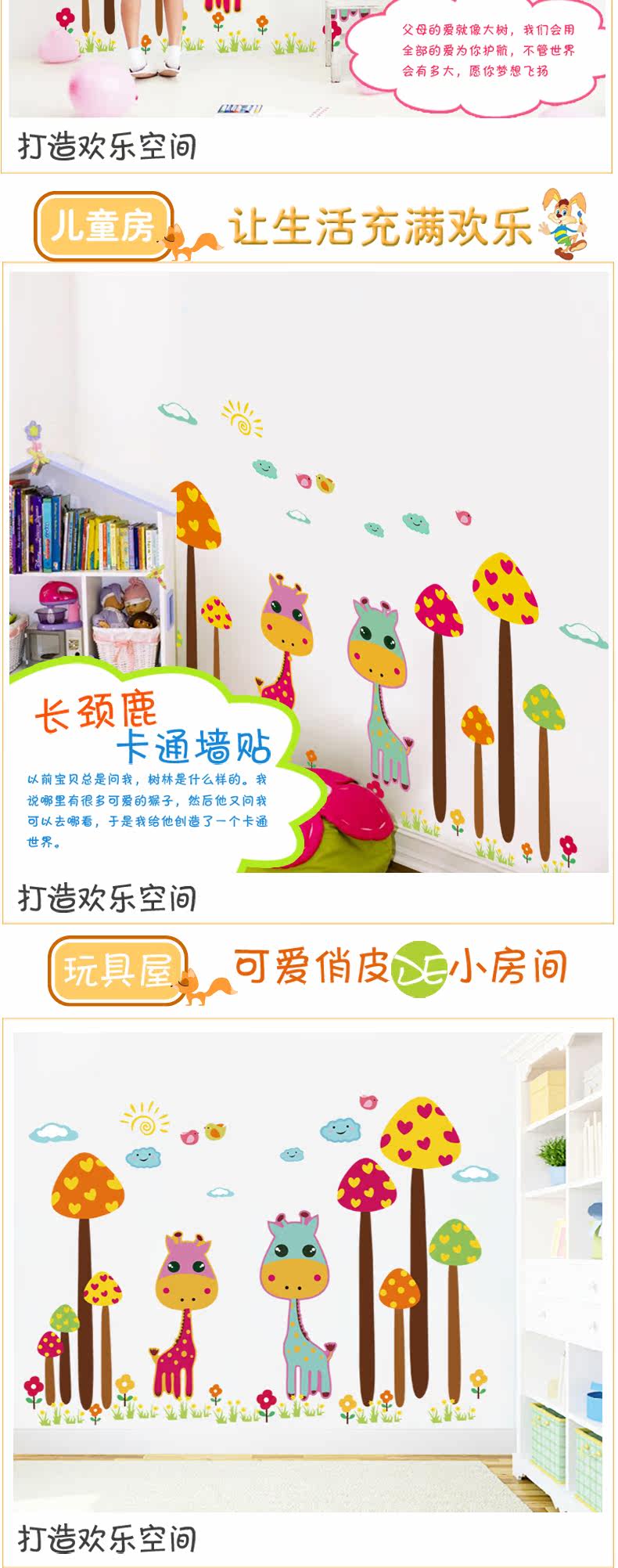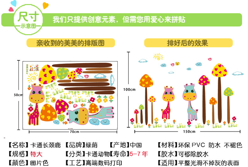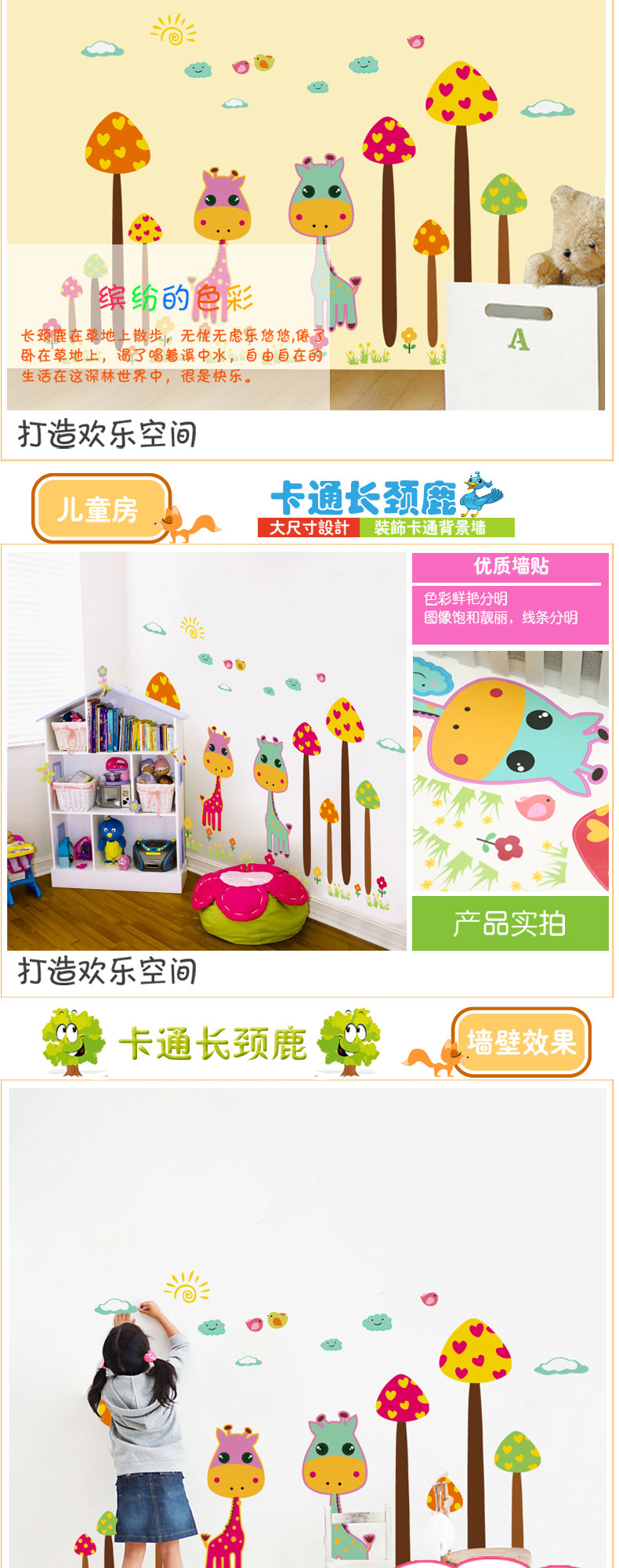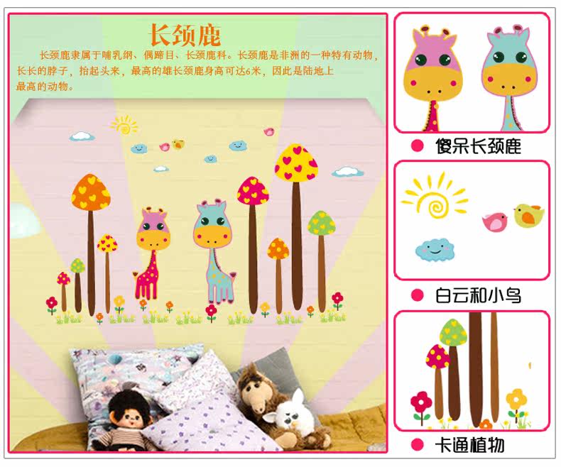 可爱卡通长颈鹿可移除墙贴纸儿童房间背景墙纸贴画幼儿园装饰贴纸