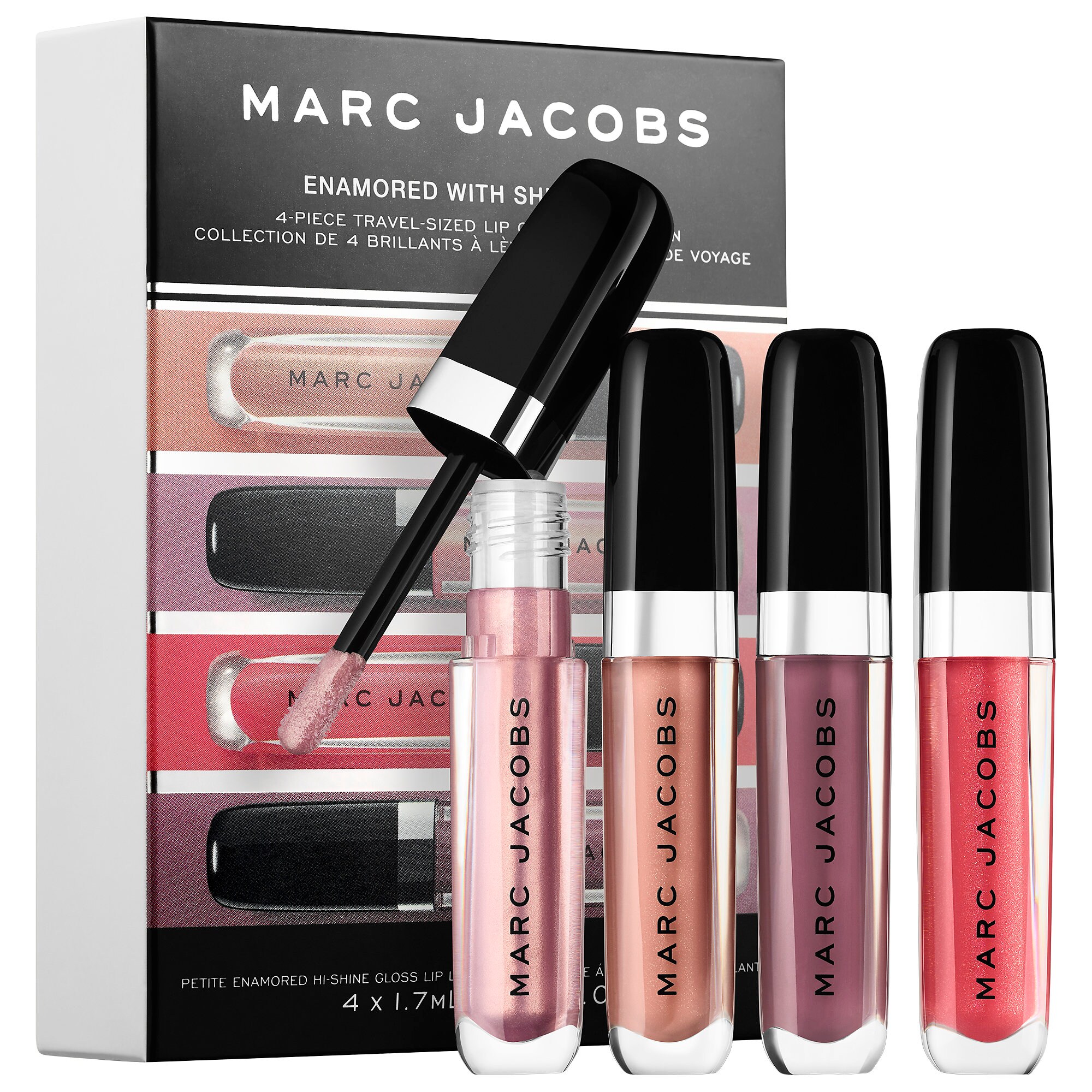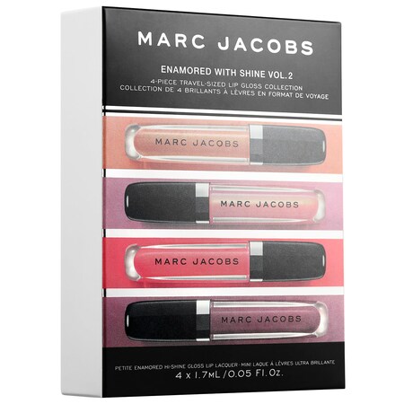 Enamored Hi-Shine Gloss Lip Lacquer delivers maximum color and brilliance. The second edition of the popular Enamored with Shine set, this new, limited-edition collection brings together four covetable colors of lip gloss, each inspired by Marc Jacobs's favorite music. Every swipe of the doe-foot applicator gives lips a lush look with lasting color and unbelievable shine that’s never sticky, just cushiony. Formulated with a unique triple shine complexa blend of high-performance ingredientsit delivers unstoppable wear and shine like "30 coats of lacquer."