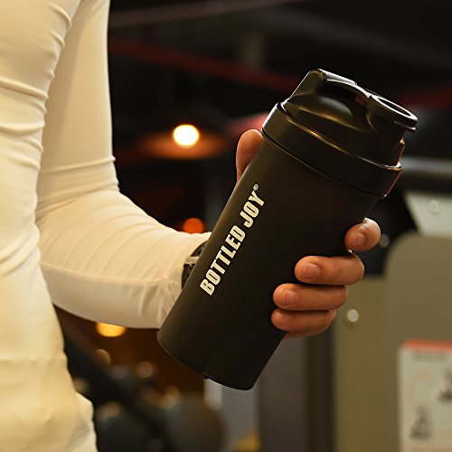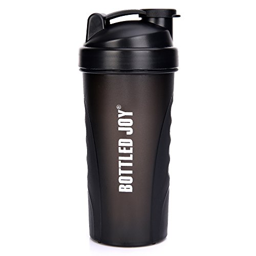 BOTTLED JOY Protein Shaker Bottle, Non-toxic Wide Mouth 100% Leak Proof Shake Water Bottles 27oz 800ml (Black)