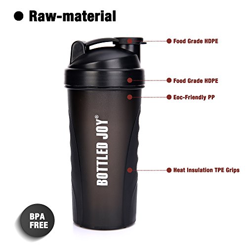 - BPA-Free and phthalate-free Protein Shaker Cup: 100% Food grade material, Eco Friendly, safe for drinking, dishwasher safe. FDA approved. Perfect for gym sports, markings easy measuring both ounces and milliliters.