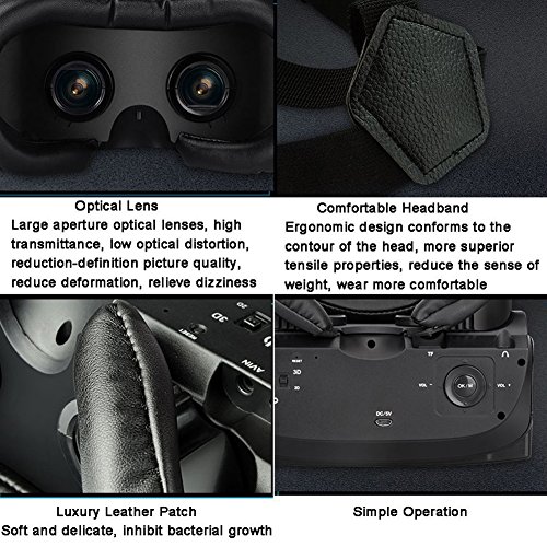 -. Feature : New Coming HMD-518 Head-mounted 3D Private theater Coming Max Support 32GB TF Card,1080P, High resolution: 640*360. / VR All-in-one 3D glasses: no phones needed, you just insert TF card and then you can enjoy your own VIP 3D movies / Only 265g. LIGHTWEIGHT. The T-shaped straps on the VR headset make it adjustable for different people. Its design can also help decrease the pressure on around your eyes so you will feel much more comfortable when enjoy the movies / You 350 Degree myopia can be naked eyes view and You Can Pupil distance adjust in the menu setting With TFT screen,please don't worry! / Two transmission ways for you of TF card and USB data transmission. easy Operate