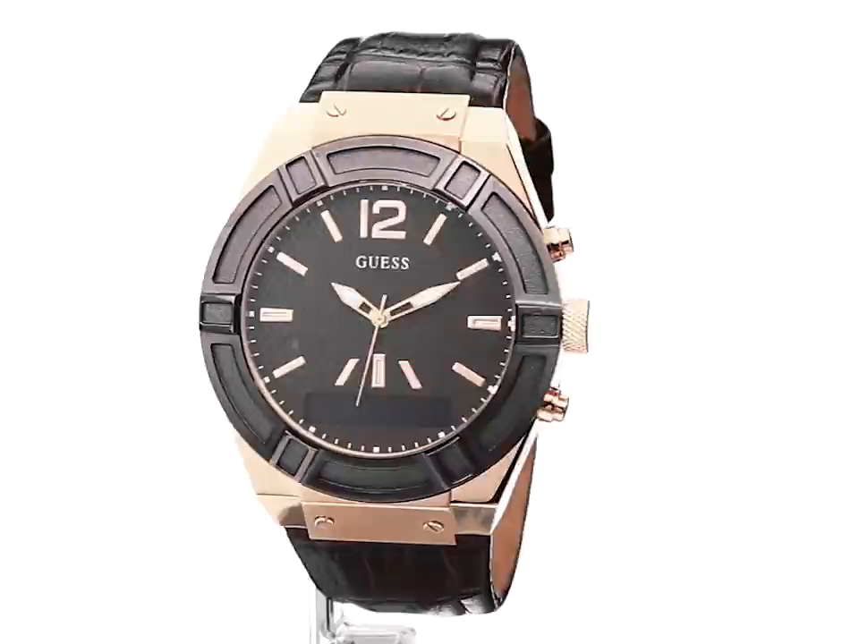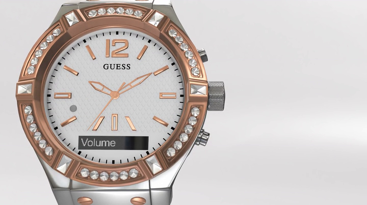 GUESS Men's CONNECT Smartwatch with Amazon Alexa and Genuine Leather Strap Buckle - iOS and Android Compatible - Rose Gold