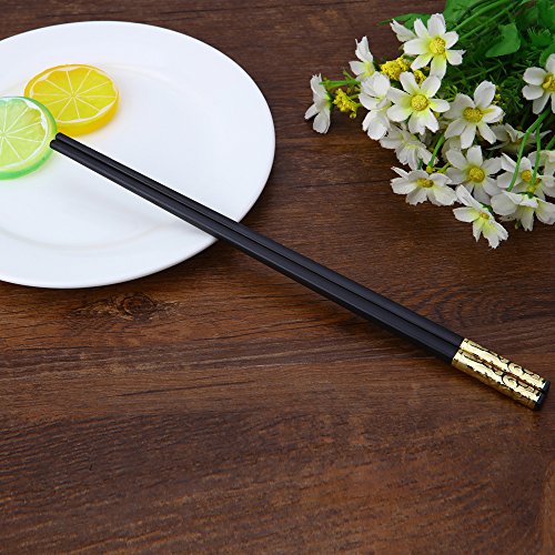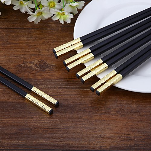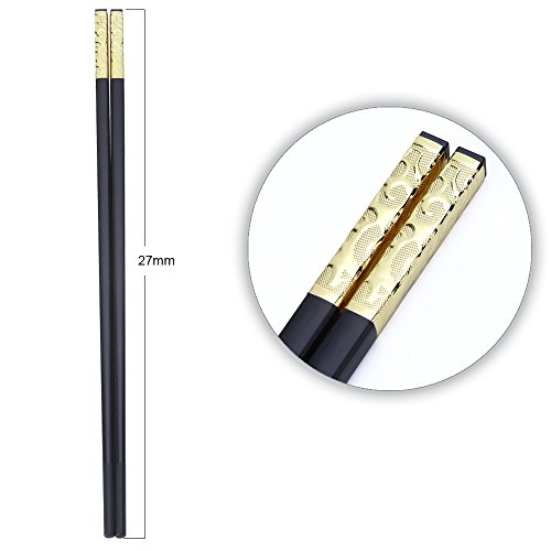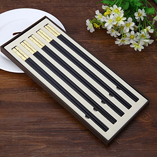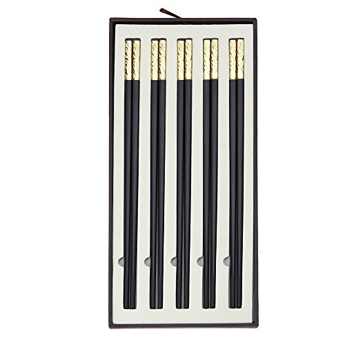 ZxU 5 Pairs Non Toxic Food Grade Alloy Household Chopsticks [Non Slip] Stainless Steel Wrapping at the Top [Dishwasher Safe] Hotel Restaurant Chopsticks with Gift Box- 10.7 inch / 27cm Long (Gold)