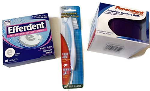 -. Feature : Available in 4 colors combination: Blue, Green, Purple, White / Pepsondent Complete Care Premium Denture Bath / No mess, no-spill strainer with handing cup feature. / Orafix Denture Brush with Double Sided Bristles / Efferdent Anti-Bacterial Denture Cleanser Tabs 16