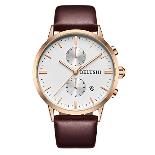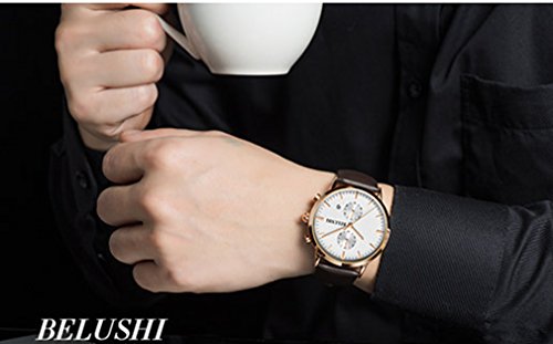 -. Title : AkiyBelushi 男性の多機能 分針-秒針 タイミング機能 時計 ビジネスカ レンダー表示 腕時計 運動 夜光 防水 白と金