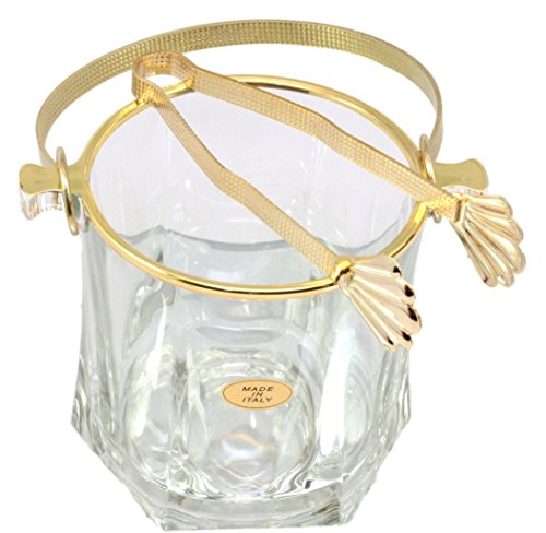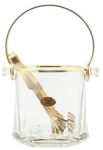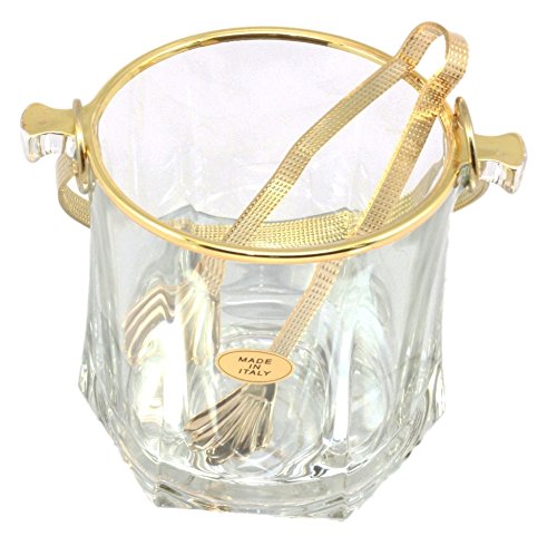 -. Brand : Ebros Gift -. EAN : 0654329200735 -. Feature : This Crystal Clear Glass Ice Bucket measures 5" tall (with the handle stowed down), 6.5" long and 4.75"wide approximately. / This Crystal Clear Glass Ice Bucket is Gold plated at the rims and the rotating handle. You will also get a matching set of gold plated tongs for the ice bucket. They are made in Italy and is guaranteed to contain NO LEAD. / This This Crystal Clear Glass Ice Bucket is personal sized, which means it is not the regular ice buckets that serves a large group of people. / Use this beautiful ice bucket for your personal pleasure at home, wedding prop or other special occasions. The unique cuts in the glass reflect the light for a fabulous way to store and display your ice. / This is an Ebros Gift exclusive collection. -. Label : Ebros Gift -. Manufacturer : Ebros Gift -. ProductGroup : Kitchen -. ProductTypeName : KITCHEN -. Publisher : Ebros Gift -. Studio : Ebros Gift -. Title : Ebros Gift Italian Gold Plated Crystal Clear Glass Ice Bucket With Tongs Personal Size 5"Tall -. UPC : 654329200735