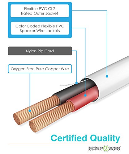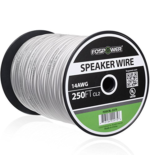 FosPower 14 Gauge Speaker Wire 250FT, CL2 Rated 14AWG 2-Conductor In-Wall Speaker Wire Cable, Oxygen-Free Pure Copper - UL Listed for In-Wall Installation