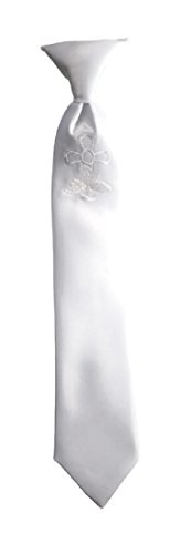 Binding : Apparel Product Description This handmade neck wear is a beautifully designed white embroidered communion cross. The "Luke" is a beautiful neck attire that will add to any religious celebration! Available in infants to adult sizing. Disclaimer: This tie may contain small parts, and accordingly, it is not suitable for use by children unless under adult supervision. Crafted of a 100% Premium Polyester Satin. 0
