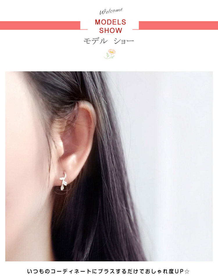 | 植物の葉っぱをモチーフにしたキュートな造形。いつものコーディネートにプラスするだけでおしゃれ度UP☆ ちょっとしたプレゼントにしても喜ばれそう♪ | |