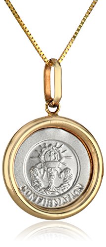 14k Gold Italian Two-Tone Confirmation Medal Pendant Necklace, 16"