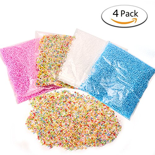 Foam Beads for Slime DIY, iBayam Micro Polystyrene Styrofoam Beads Small Foam Balls Slime Beads Set for Slime Making Art DIY Craft, 0.1-0.18 Inch, 4 Pack Decorative Balls Arts Crafts Supplies