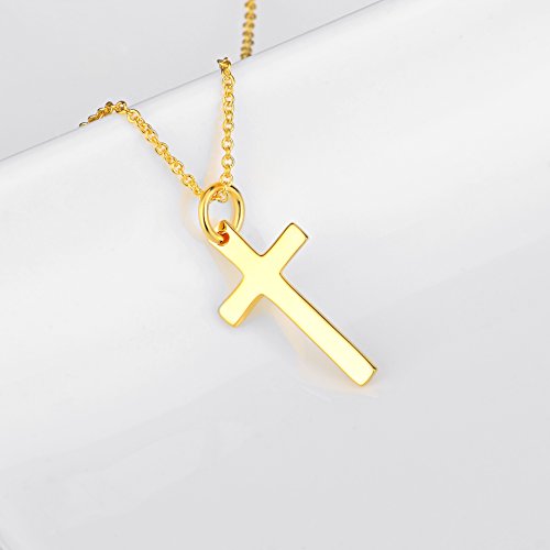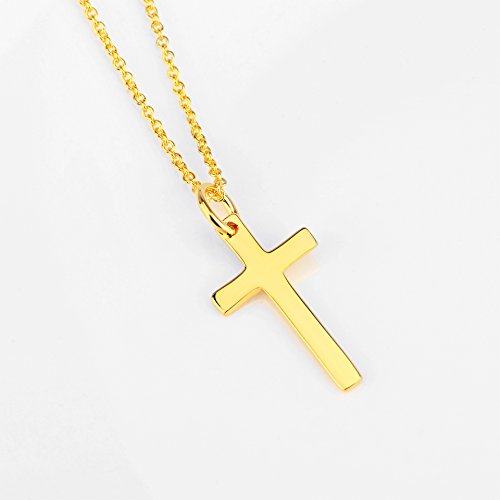 This classic cross necklace is simple and beautiful. It features a shiny, high polish, mirror finish and looks great with everything from t-shirts to dressy attire. Simple and beautiful - looks great with everything from a t-shirt to dressy attire.The cable chain measures 16" + 2" adjustable extender. The cross pendant measures approximately 1" x 1/2" . Guaranteed .925 Sterling Silver. Available in your choice of 14K Gold Flashed or Rhodium Flashed Finish. Stamped with 925 to ensure Sterling Silver base. Comes packaged in a custom LEMONDROP jewelry box, ready for gifting. Perfect gift for birthday, Christmas, stocking stuffers, graduation, Valentine's Day, Easter, Mother's Day and any other holiday or celebration.Feature