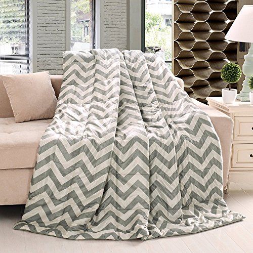 Luxurious Grey and White Oversized Chevron Throw Blankets 60" x 70" Super Comfy, Soft and Plush