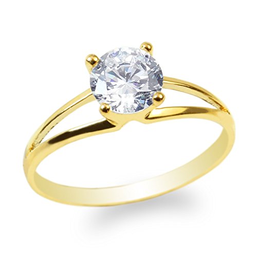 -. Title : JamesJenny 10K Yellow Gold 0.8ct Round CZ Beautiful Lined Solitaire Ring Size 4-10