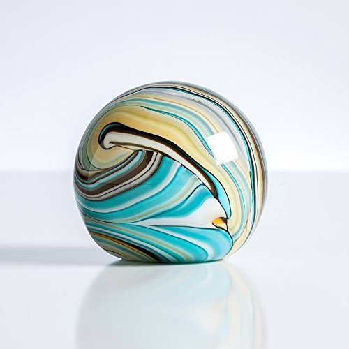 Swirl Teal and Gold 3" Glass Ball Paperweight Decor
