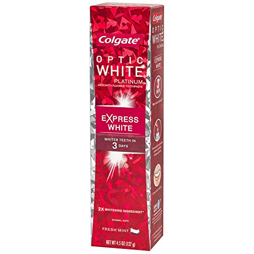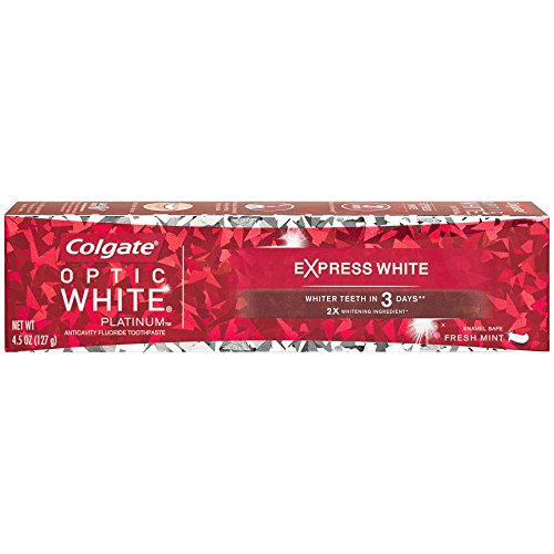 Colgate Optic White PLATINUM Express White Toothpaste is a revolutionary product in the Optic White collection. This breakthrough formula gives users whiter teeth in just three days just by brushing (for best results, use as directed for 4 weeks) . The toothpaste contains 2x more of the whitening ingredient, Hydrogen Peroxide (Vs Optic White Sparkling Mint). Having a radiant and polished look is quick and easy with Colgate Optic White PLATINUM Express White.Feature