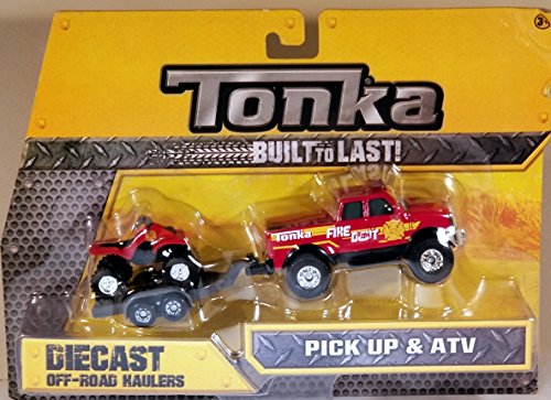 -. Title : Tonka Diecast Metals - Fire Department Pick-Up and ATV with Trailer - 1:64 scale vehicle