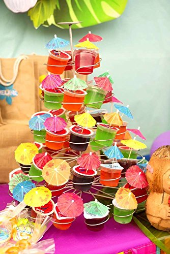-. Title : Charmed Luau Tropical Hawaiian Party Decorations - Lei Garland, Grass Table Skirt, 144 Paper Cocktail Umbrellas