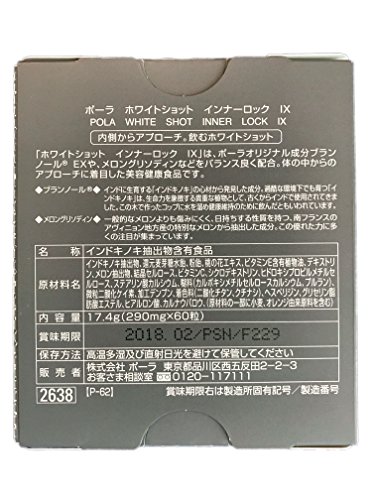 -. Binding : Health and Beauty -. IsAdultProduct : 0 -. Label : Pola -. Manufacturer : Pola -. ProductGroup : Health and Beauty -. ProductTypeName : HEALTH_PERSONAL_CARE -. Publisher : Pola -. Studio : Pola -. Title : Pola White Shot Inner Lock Ix 60 Tablets for 1 Month Whitening Supplements Japan Import