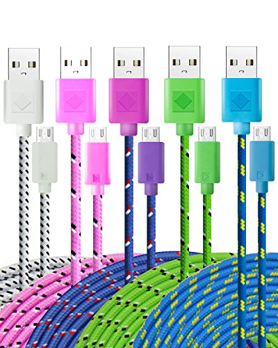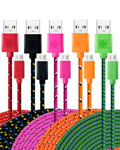 Costyle 5-Pack Universal 3M/10ft Nylon Fiber Braided USB 2.0 Charge/Sync Data Cable
