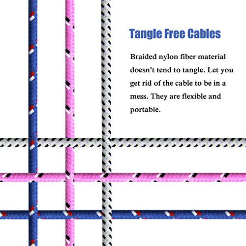 Colorful Tangle Free Cables: Braided Nylon Fiber material can let you get rid of the cable to be in a mess. The durable braided Nylon Fiber material with a longer bend lifespan compare with standard cables. There are different colorful cables for you to choose to match your mood.