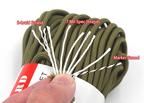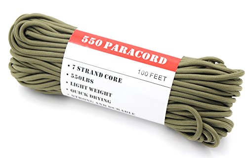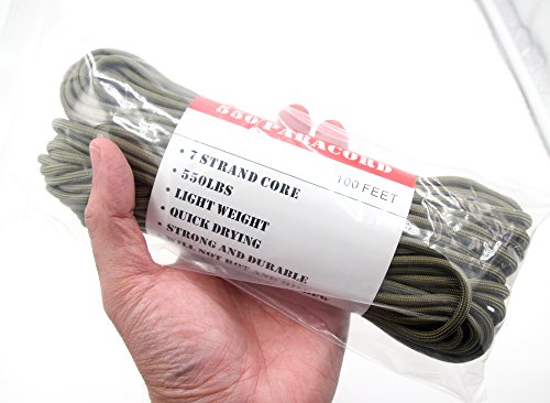 Longtail Mil-Spec Grade Type III 550lb Paracord / Parachute Cord 100 Feet (Olive)