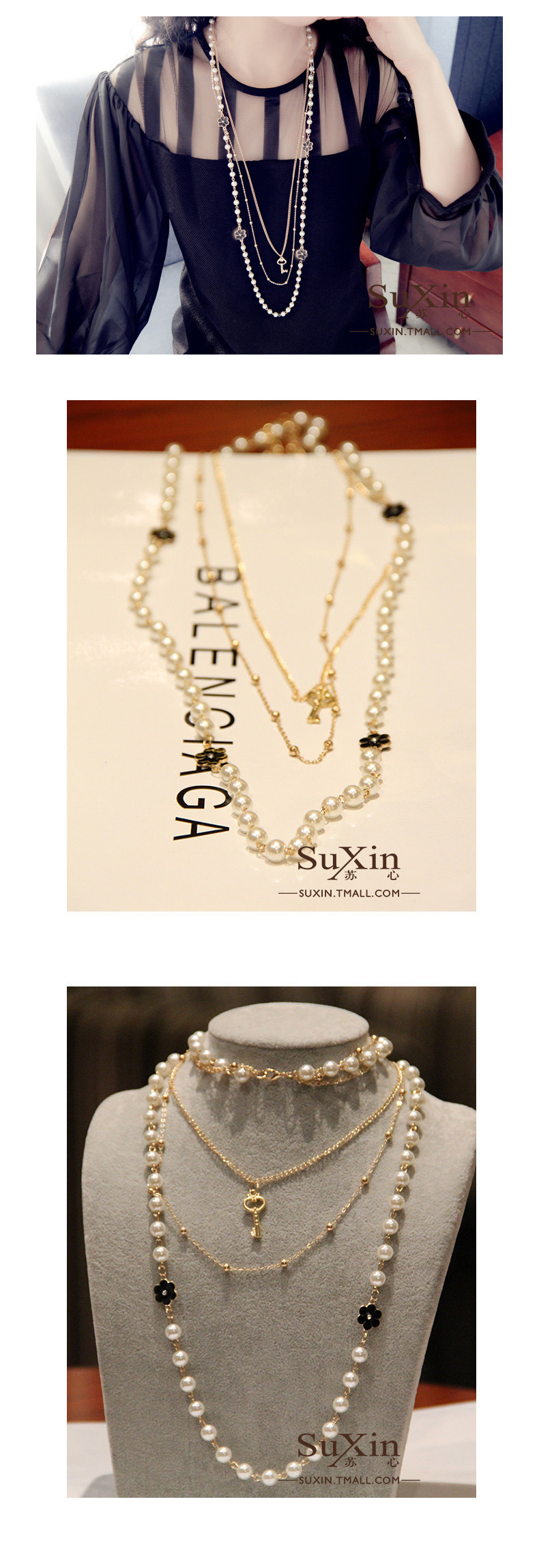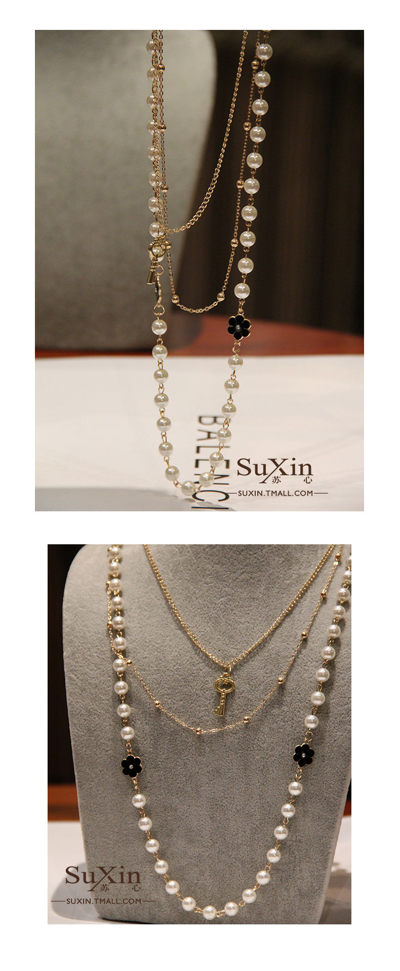 Chain: Alloy + artificial pearl pendant;