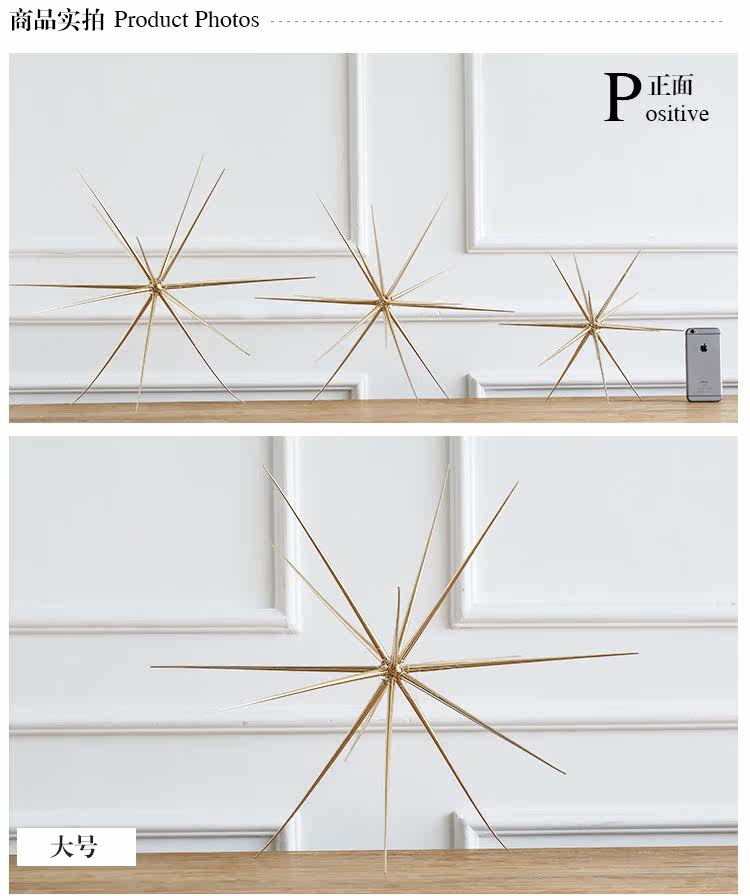 欧式创意家居装饰品摆件客厅金色立体12芒星挂饰挂件