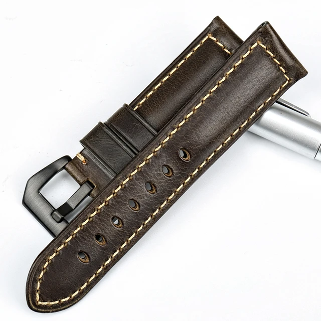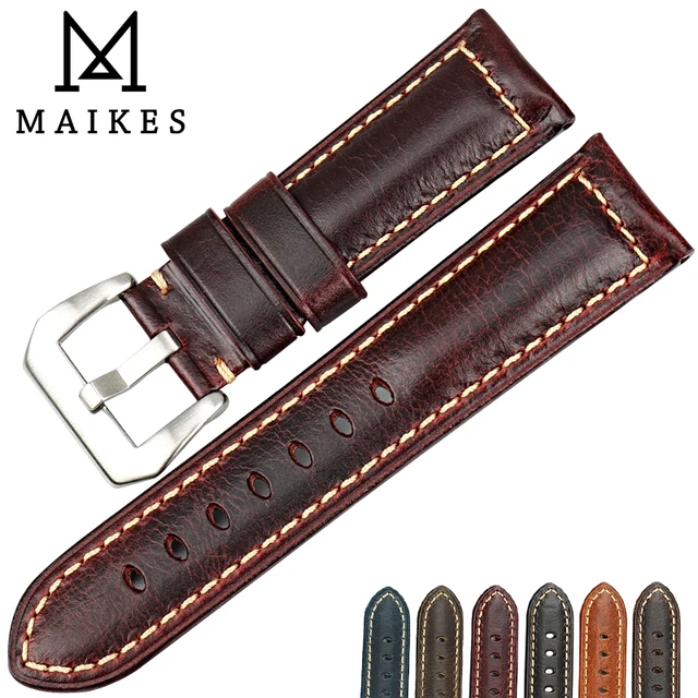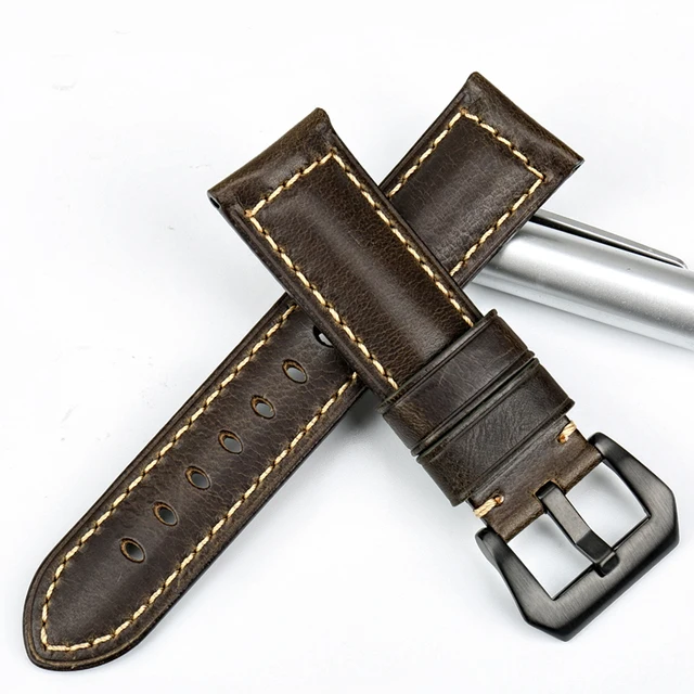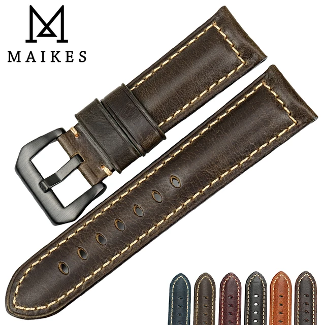 | [해외] MAIKES 새로운 디자인 시계 줄 녹색 정품 가죽 시계 스트랩 22 24 26 미리메터 수제 시계 밴드 블랙 버클 파네 |
