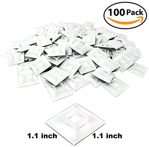 Large, Premium Zip Tie Adhesive-Backed Mounts 100 Pack by Nova Supply. Pro-Grade, UV White Cable Tie Bases: 1.1 in x 1.1 in. Screw-Hole Anchor Point Gives High-Strength Durability for Long-Term Use