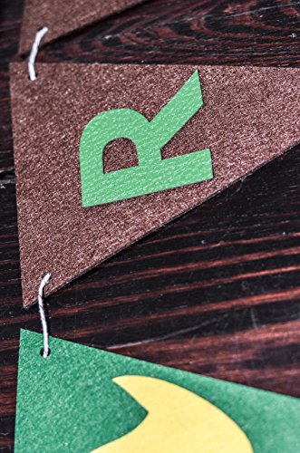 BOLD: Banner made of thick felt, adjustable space in between the pendants, twine is 60 inches long and is intertwined with glitter. 6 pendants are 7 x 5 inches, letters on pendants are approximately 2.25 x 2.25 inches, banner is 27 inches long