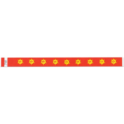 -. Title : Smiley Sun 3/4 Inch Tyvek Wristbands - Natured Inspired Designs - Red Color - 500 Bands Per Box