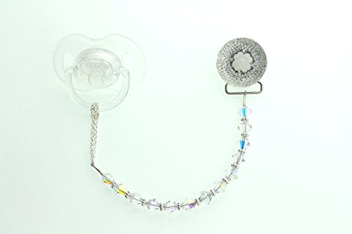 -. Title : Sparkly Flower with Swarovky Crystals Beads Pacifier Clip (CSG)