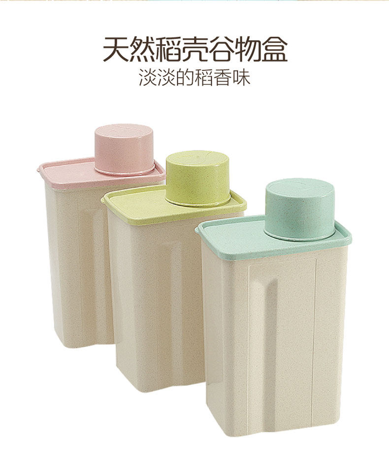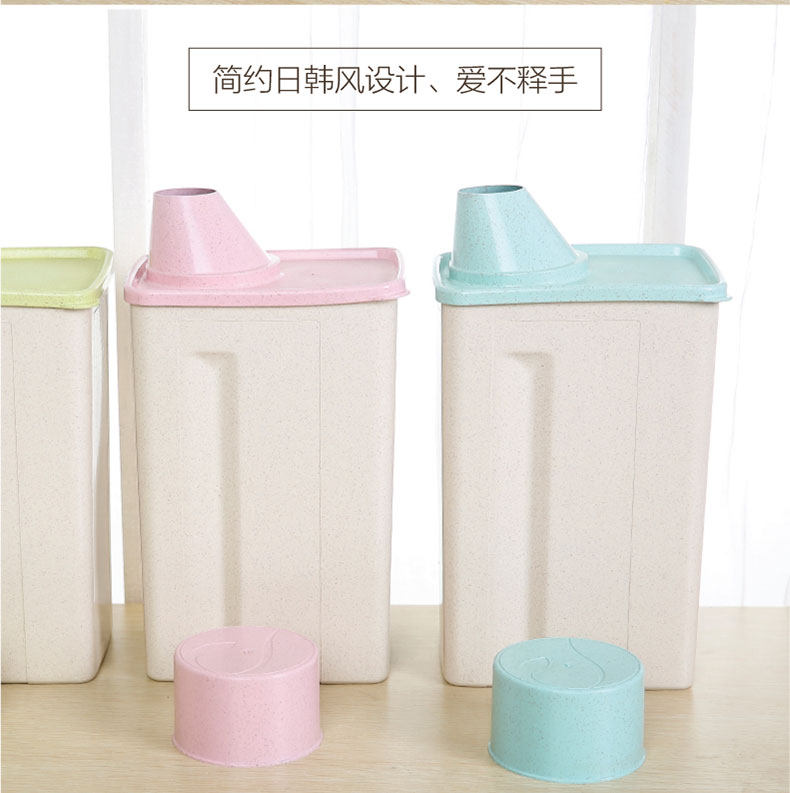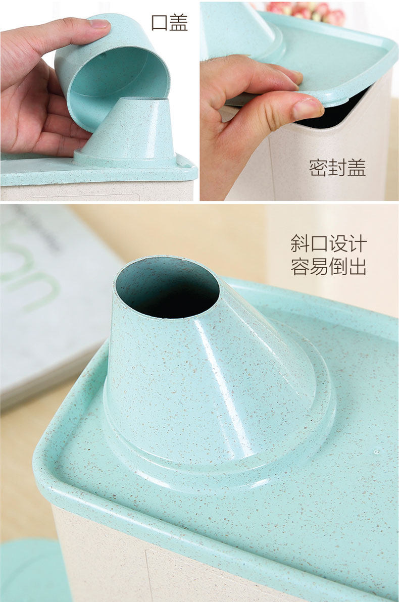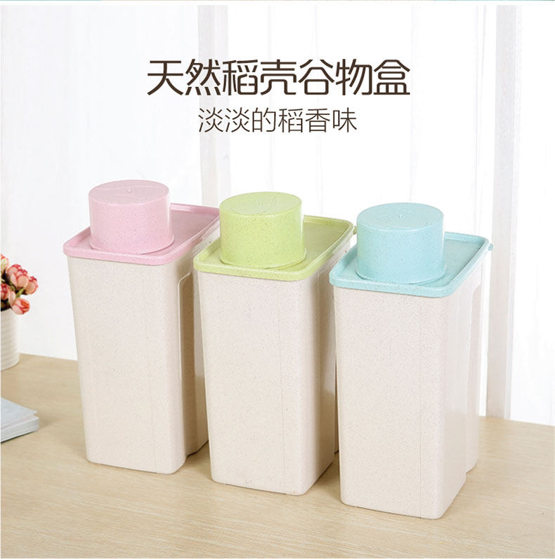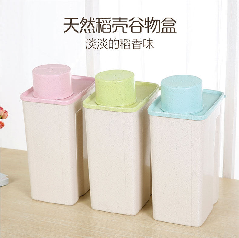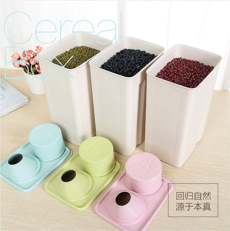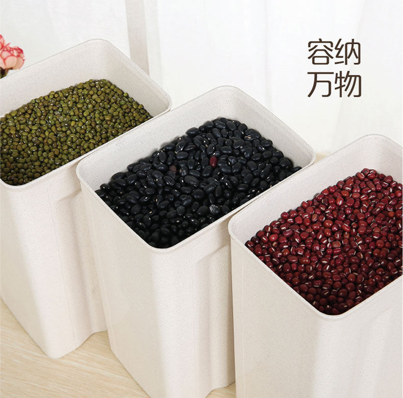 麦子纤维家用方形防潮谷物罐 特大号收纳罐 带盖厨房密封罐