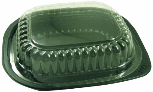 Choice-Pac L1J-1214-Blk Polypropylene Dim Sum Tray with Fluted Edges and Clear Raised, Fluted Lid, 7" Length x 6" Width x 2" Height, Black, Deep, Square (Case of 300)