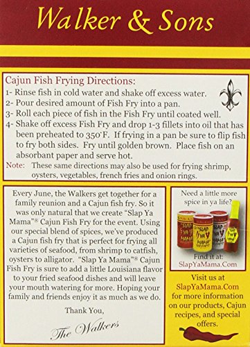 -. Binding : Misc. -. Brand : Slap Ya Mama -. Color : multicolour -. EAN : 0712103112893 -. Feature : Made with all natural ingredients / No MSG / Kosher / Made in United States -. IsAdultProduct : 0 -. Label : Slap Ya Mama -. Manufacturer : Slap Ya Mama -. PackageQuantity : 1 -. ProductGroup : Grocery -. ProductTypeName : GROCERY -. Publisher : Slap Ya Mama -. Size : 12oz -. Studio : Slap Ya Mama -. Title : "Slap Ya Mama" Cajun Fish Fry 12 Oz. (Pack of 2) -. UPC : 712103112893