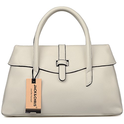 -. Feature : Design: real leather / structured handbags' shape / golden color hardware / damask lining(silky coffee color) / four metal feet on bottom (preventing scratching) / flap&latch closure / simple and elegant handbag. / Carry styles: top handle bag / crossbody bag / shoulder bag / handbag / satchel / Dimension:(L*H*W) 14*9*5 inches / removable shoulder strap: appr.100~113cm, drop height 49cm / handle strap drops 4.3in height / net weight: 1kg / pockets: 2*interior zip pockets, 2*item slots,1*exterior pocket / Occations: basic daily use / business casual / dating / formal / commuter / 【Jack&Chris】is a trademark registered in the US, UK and etc. Our brand has gained recognition and protection from amazon. We will not allow any forms of infringement. Please pay attention to avoid purchasing counterfeits from other seller.