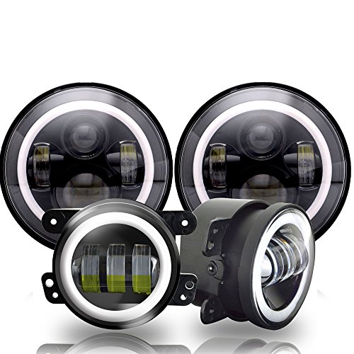 Package Included:Pair 7" Inch Halo Led Headlights + Pair 4" Inch Halo LED Fog Lights + Pair H4 Adapters + Pair H4 to H13 Anti flicker Adapters + Pair 9005/9006-5202(H16) Conversion Wiring Harness (For Fog Lights)