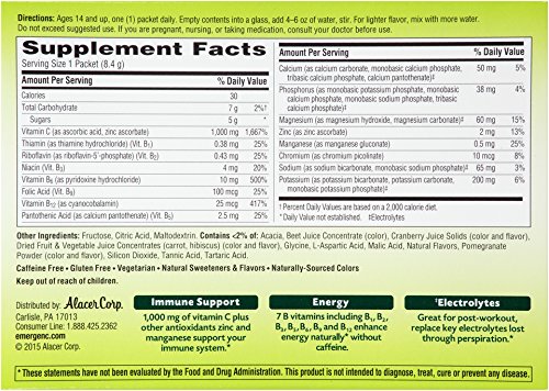 Includes 30 individual serving-size packets (0.31 oz. each) of Emergen-C Immune+ Raspberry flavor powder drink mix
