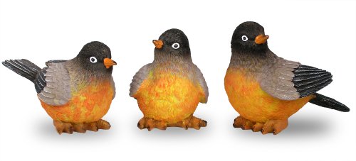 Robin Bird Statues - Set of 3 Hand Painted Bird Figurines - Approximately 3" Tall - Birds for Home and Garden