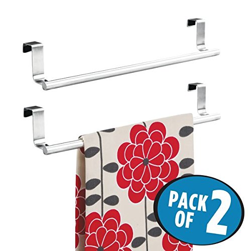 mDesign Kitchen Over-the-Cabinet Hand Towel Bar Holder - Pack of 2, 14", Brushed Stainless Steel