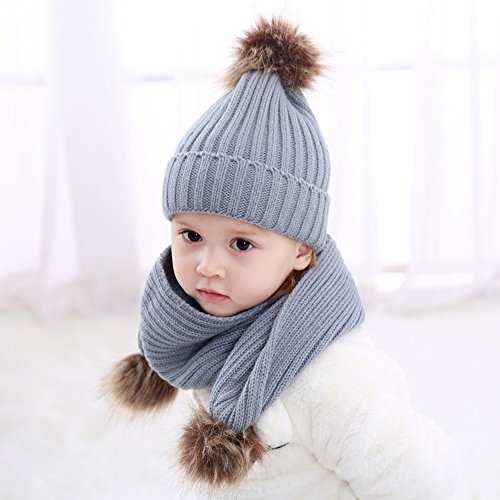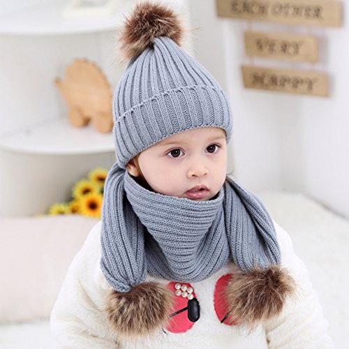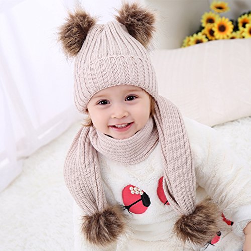 | (BAOBAOLAI)/Accessories/Cold Weather Accessories/DIRECT FROM USA/BAOBAOLAI Baby Girl Boy Winter Warm Knitted Pompom Beanie Hat with Scarf Set |