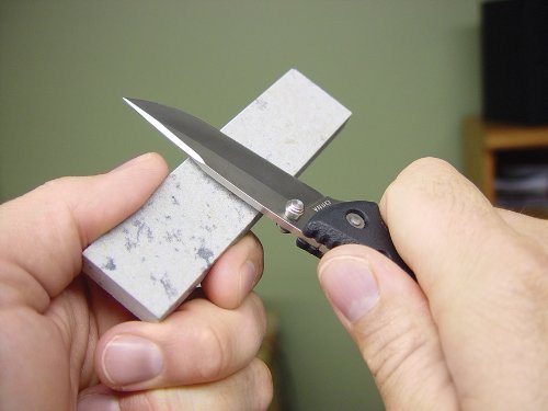 - 4 inch medium Arkansas Stone sharpens large and small knives