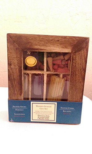Wooden Incense Gift Set, 120 Incense Sticks, 40 Incense Cones, 1 Wooden Holder