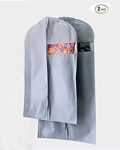 -. Feature : TOP QUALITY - Water resistant garment bag covers with sturdy zip to last a lifetime. / FEELS LIKE LINEN - Luxurious, breathable non-woven fabric looks and feels like linen for extra comfort, cushion, and style, great gift for men or women. / SEE WHAT'S INSIDE - Through clear window instantly know if its your skirt, dress or dance costume. / HOME AND TRAVEL - Light & portable for hanging in the closet or pack in luggage, folding carry-on, rolling suit case; No more hassles getting through airport security while travelling; Simple, hangs easily, holes for hangers & handles in your car; Lasts longer than dry cleaning bags. / COMBO SIZE &DIMENSIONS- 24 inch w rounded shoulders, 40 in L regular, 47 in L long, mylar vinyl & plastic.