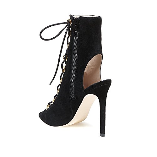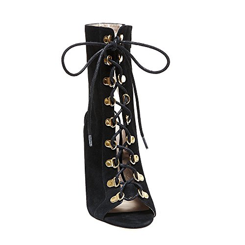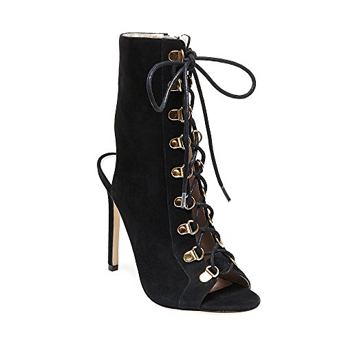 Product DescriptionNot for the meek, these suede lace-up booties with peep-toes, cutout backs, and stiletto heels are sure to turn heads.? style kennee with a fitted midi dress for an unexpectedly seductive ensemble.0